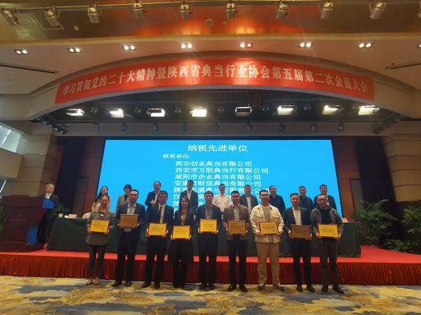 3月30日至31日,陜西省典當(dāng)行業(yè)協(xié)會(huì)第五屆第二次會(huì)員大會(huì)暨第五屆第三次理事會(huì)在西安隆重召開(kāi),大會(huì)以貫宣黨的二十大精神和增進(jìn)典當(dāng)行業(yè)高質(zhì)量發(fā)展為主旨,全面回顧2022年全省典當(dāng)業(yè)發(fā)展情況,科學(xué)擘畫(huà)2023年協(xié)會(huì)工作計(jì)劃。同時(shí),大會(huì)對(duì)2022年業(yè)務(wù)工作中優(yōu)秀會(huì)員單位予以表彰,我公司喜獲陜西省典當(dāng)行業(yè)2022年度“納稅先進(jìn)單位”榮譽(yù)稱號(hào),公司職工馮亮源獲得“優(yōu)秀通訊員”表彰。