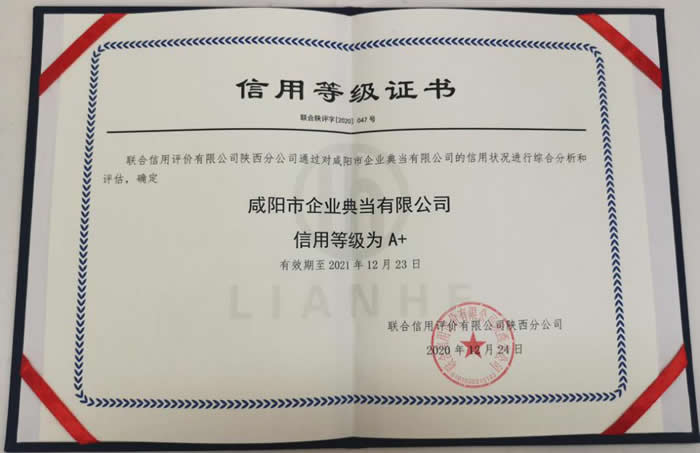 新年伊始,萬象更新,喜訊傳來。經(jīng)“中國誠信信用管理股份有限公司陜西分公司信用評(píng)級(jí)委員會(huì)”審定,授予我公司2020年度企業(yè)資信等級(jí)為A+級(jí)并頒發(fā)資信等級(jí)證書。